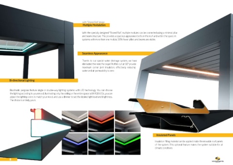 Bioclimatic pergolas feature single or double-way lighting systems with LED technology. You can choose